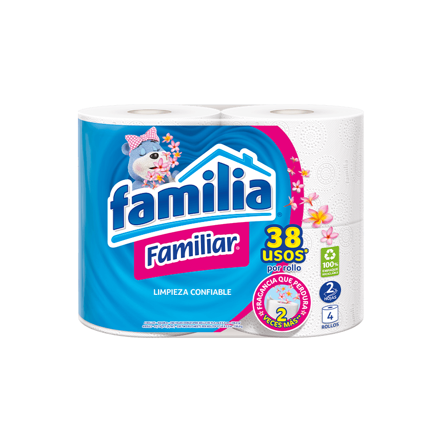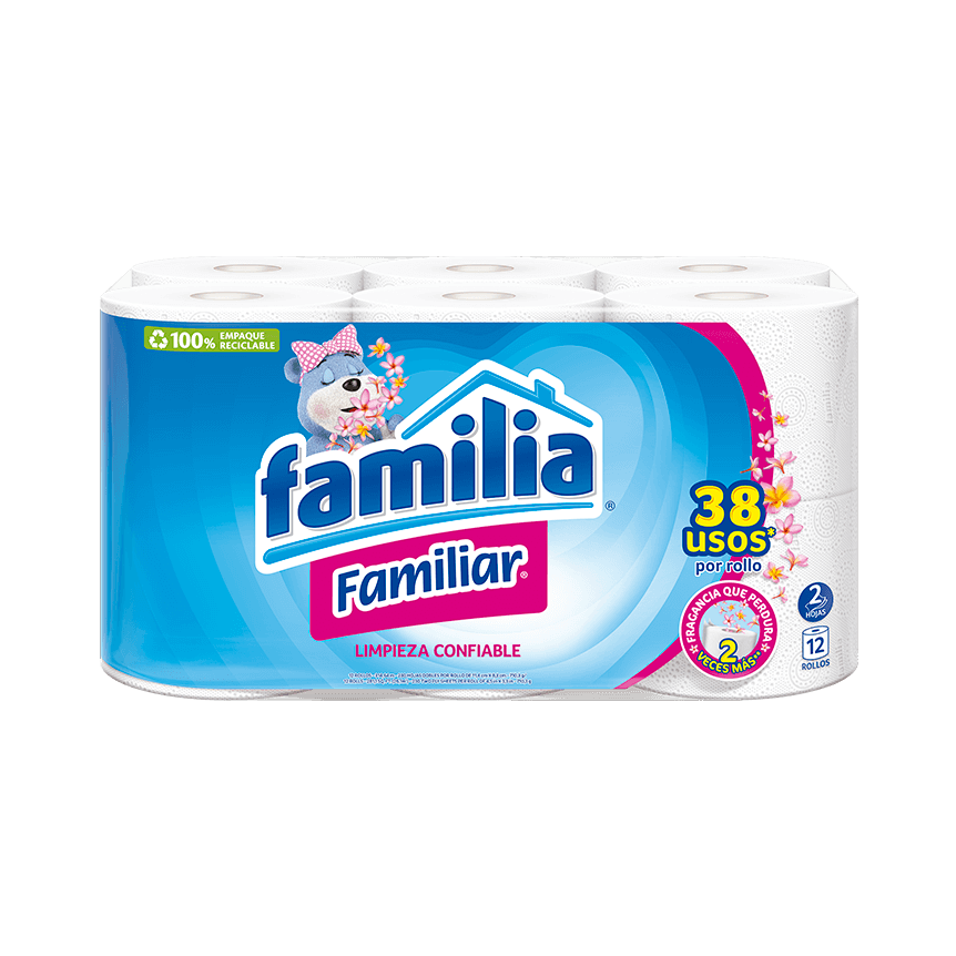 ...másPapel Higiénico Familia® Familiar es sinónimo de “rendimiento a tu alcance”; sus dos hojas son tan gruesitas que parecen tres y su desempeño es mejor que muchos triple hoja del mercado. Este es un producto con el sello FSC®, que garantiza que las materias primas utilizadas en nuestro proceso provienen de fuentes certificadas o de materiales reciclados que cumplen los estándares FSC®, contribuyendo con el cuidado del medio ambiente. Disfruta de este papel higiénico suave y descubre sus beneficios.