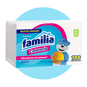 Servilletas Familia® Cafetería: fueron creadas pensando en ocasiones especiales como fiestas o celebraciones. Su tamaño las hace súper versátiles, perfectas para usar como portavasos, servir comida o envolver alimentos. Además, vienen dobladas en Z, lo que las hace perfectas para poner en servilleteros dispensadores.